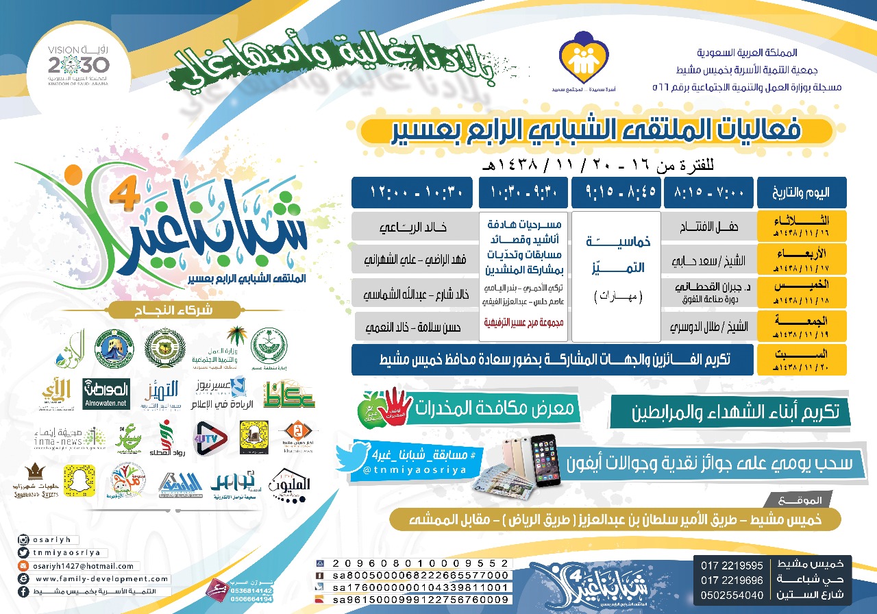 الملتقى الشبابي الرابع بعسير "شبابناغير4" ينطلق يوم غدٍ الثلاثاء
