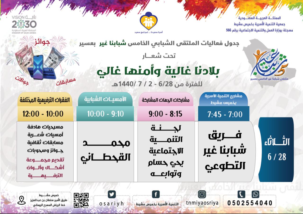 120 دقيقية ... وتنطلق فعاليات ملتقى “شبابنا غير” الخامس بعسير..